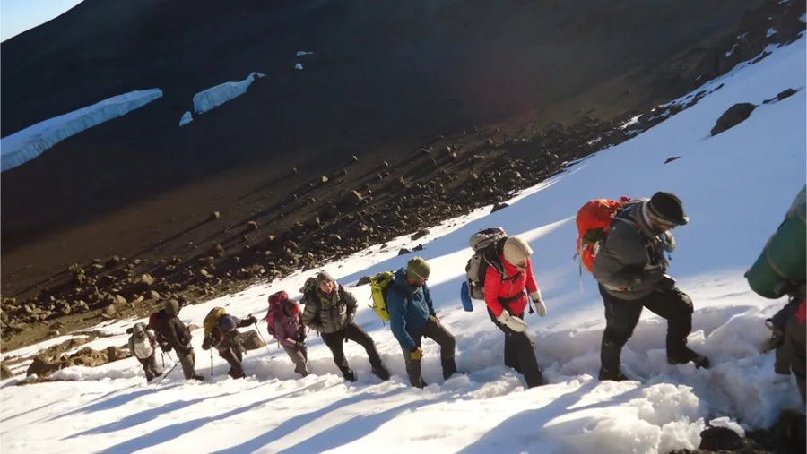 A steady ascent with impressive views of Kibo and the eastern ice fields.
